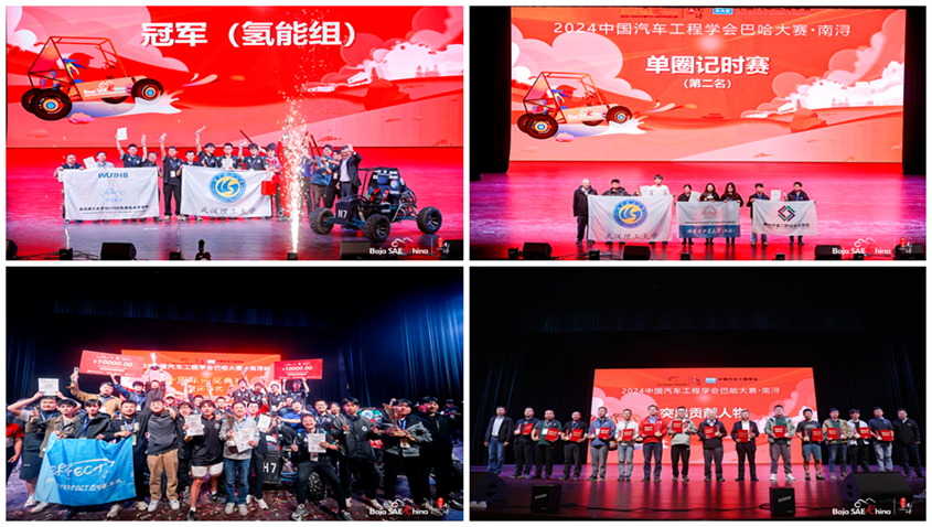 On October 19, 2024, the 2024 SAE-China Baja Competition·Nanxun Station, co-organized by the Society of Automotive Engineers of China (SAE-China) and the International Hydrogen Fuel Cell Association (IHFCA), concluded successfully in Nanxun, Zhejiang. The event brought together 76 teams from across China for a thrilling showcase of speed and innovation.Wuhan University of Technology (WUT) made history with three teams excelling in their respective categories: