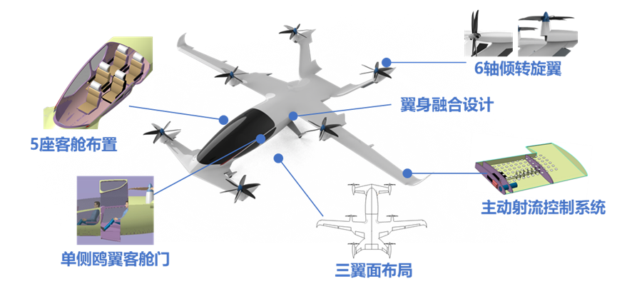 The "Youth in Splendor" team from the School of Naval Architecture, Ocean and Energy Power Engineering also claimed a National Third Prize for their project, "Ride the Wind: An Intelligent Flow-Control VTOL Aircraft." Team members Zhang Lu, Cheng Qipeng, Zeng Xianze, and Xia Lulin, advised by Professor Shao Jiangyan, leveraged deep reinforcement learning-based active flow control to manipulate complex wing flow fields, improving lift-to-drag ratios, maneuverability, noise reduction, and flutter suppression. Their "six-axis tilt-rotor + triple-wing" configuration combined vertical takeoff/landing capability with high-speed cruising stability, reducing vibrations for enhanced passenger comfort.