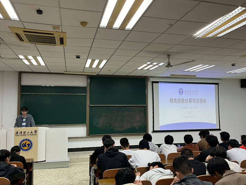 庄俊学长则着重介绍了科研竞赛与推免相关事宜,强调科研竞赛虽然重要,但学分绩点才是所有加分项的基础。他希望同学们能量力而行,并重视科研竞赛。即使没有保研的打算,科研经历也是未来就业中有力的加分项。