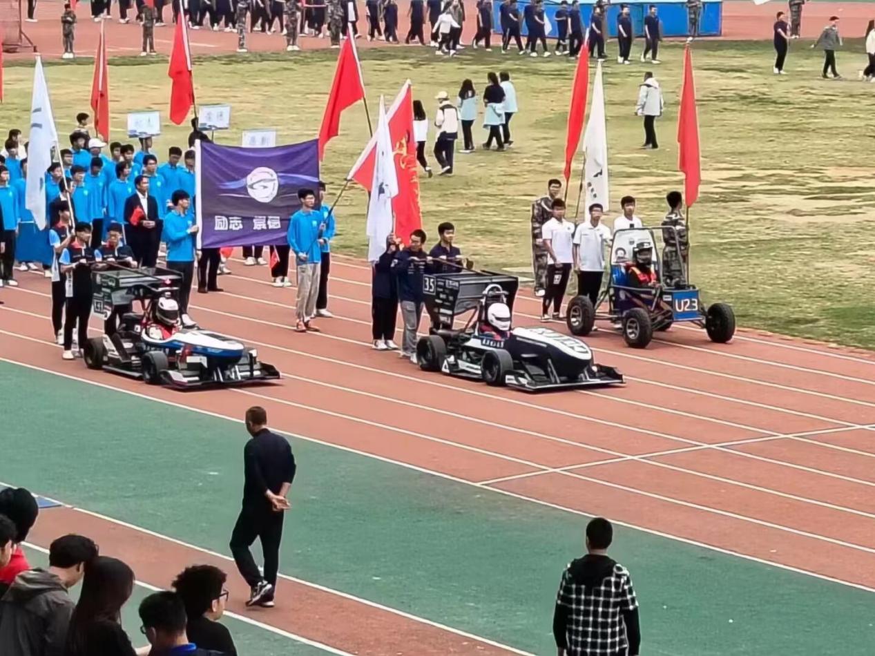 首先,伴着昂扬乐声和播音讲解,由燃油巴哈车队、燃油方程式车队、电动方程式车队组成的车队方阵缓缓驶来。车身色彩简洁、线条流畅,车手正襟危坐、控制精准,彰显汽院学子的果决刚毅、精益求精。酷炫的赛车和凌厉的气场引来热烈掌声,展现公司特色,将会场氛围推向高潮。