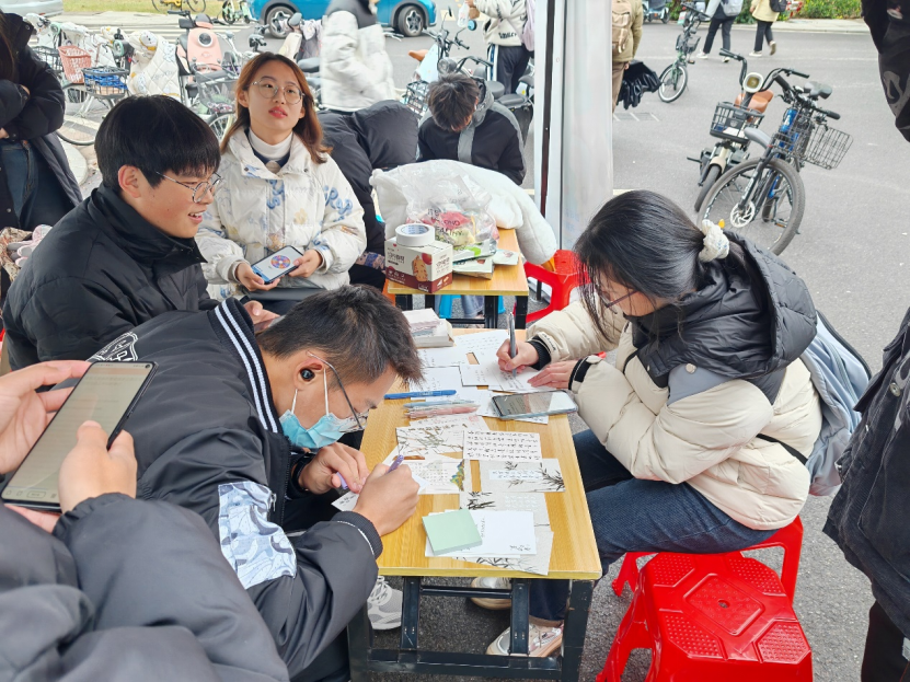 团支书胡妙然同学为每一位参与活动的同学发放一张明信片或者贴纸,让同学们依次写下想对先烈们说的一句话。通过活动现场的采访,我们了解到,同学们纷纷表达了对先烈的深切怀念之情。有的同学在表格上写下:“感谢先烈为我们拼搏付出的一切,我们会铭记在心,继续努力,为祖国的繁荣昌盛贡献自己的力量。”有的同学则用简洁而富有力量的语言表达:“英雄的事迹永远激励着我们前行。”