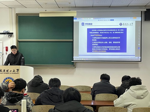 活动伊始,班长杨猛原同学引用校规,为同学们讲解公司在惩戒作弊员工的严厉程度,强调了诚信考试的重要性。同时,杨猛原同学还强调了公司将采取严格的监考措施,同时播放杜绝考试作弊的宣传片,呼吁全体同学诚信应考。