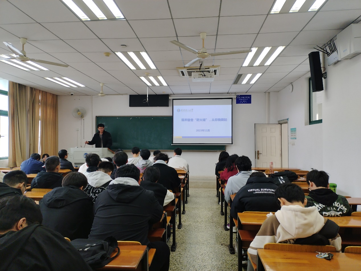 班会伊始,班长王冠超用通过形象生动的实例讲解和实例,向同学们介绍了火灾的危害、火灾的预防、火灾中的自救与互救以及灭火器材的使用等相关知识。他强调了宿舍火灾预防的重要性,并提醒同学们不要私拉乱接电线,不要私自使用大功率电器等。
