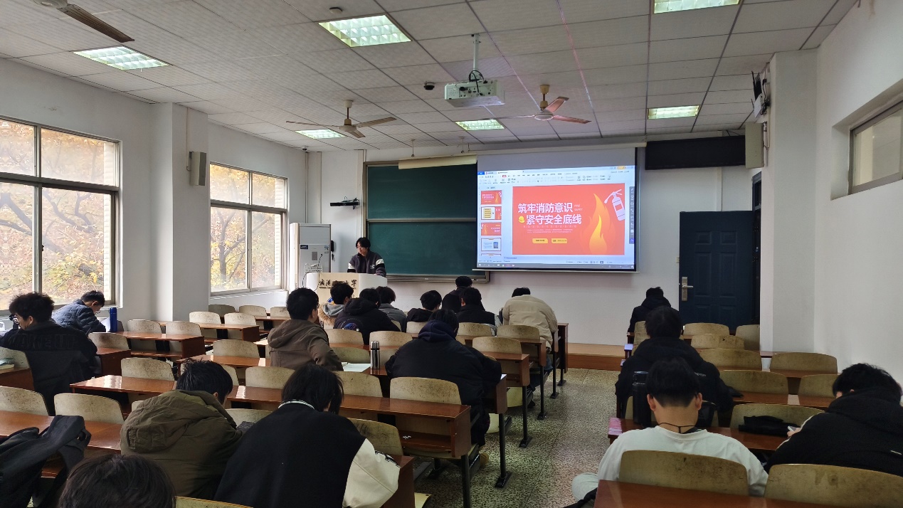 为扎实推进校园消防安全工作,切实提升全班同学的消防安全意识和应急自救能力,近日,车辆2302与12月10日在致远楼02召开消防安全主题班会。本次班会由班长董瑞鹏同学全程主讲,以"落实消防责任,防范安全风险"为核心,通过系统讲解、案例分析和实操演示,为同学们上了一堂生动实用的消防安全课。