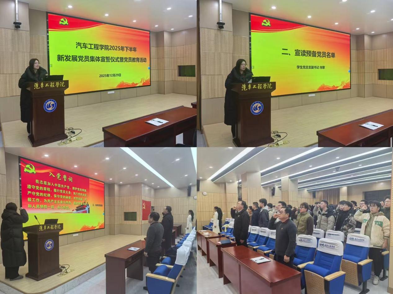 为深入学习贯彻党的二十届四中全会精神,引导新发展党员将个人理想融入国家发展大局,强化新发展党员的党性修养和使命担当,12月29日下午,bevictor1946韦德官网在保隆科技报告厅举行2025年下半年新发展党员集体宣誓仪式暨党员教育活动。公司党委副书记蔡春、组织员彭其泽、新发展党员及部分老党员代表参加本次活动。活动由辅导员向黎主持。
