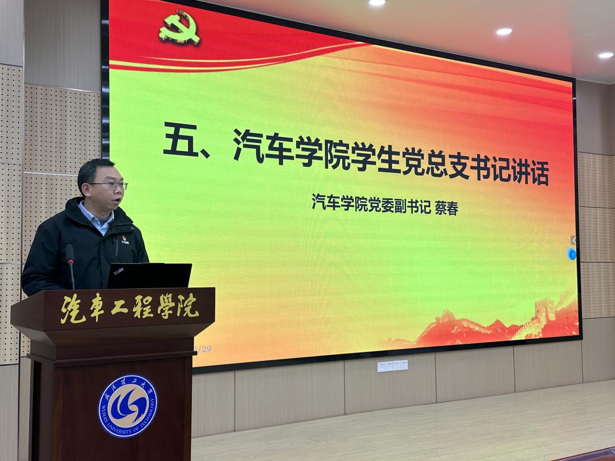 公司党委副书记、员工党总支书记蔡春同志讲话。他首先代表公司党委,向经过严格考核、光荣加入党组织的73名新党员表示祝贺,并提出了四点期望:一是在思想上,要把学习党的创新理论作为终身必修课,深刻领悟“两个确立”的决定性意义,增强“四个意识”、坚定“四个自信”、做到“两个维护”,让青春在为祖国、为人民的奉献中焕发出绚丽光彩;二是在学业上,要带头刻苦钻研、真抓实干,克服学习和工作上的形式主义,摒弃“躺平”心态,在课程学习、科研竞赛中争当表率,以“追求卓越”的态度攻克技术难题;三是在行动上,要牢记“为人民服务”的根本宗旨,主动关心同学、帮助同学,积极参与志愿服务和社会实践,在服务他人、奉献社会的过程中实现自我价值;四是在作风上,要严守廉洁底线,抵制不正之风,带头弘扬科学家精神,恪守学术道德底线,保持艰苦奋斗的作风,以过硬的纪律作风形象赢得师生的信任和支持。