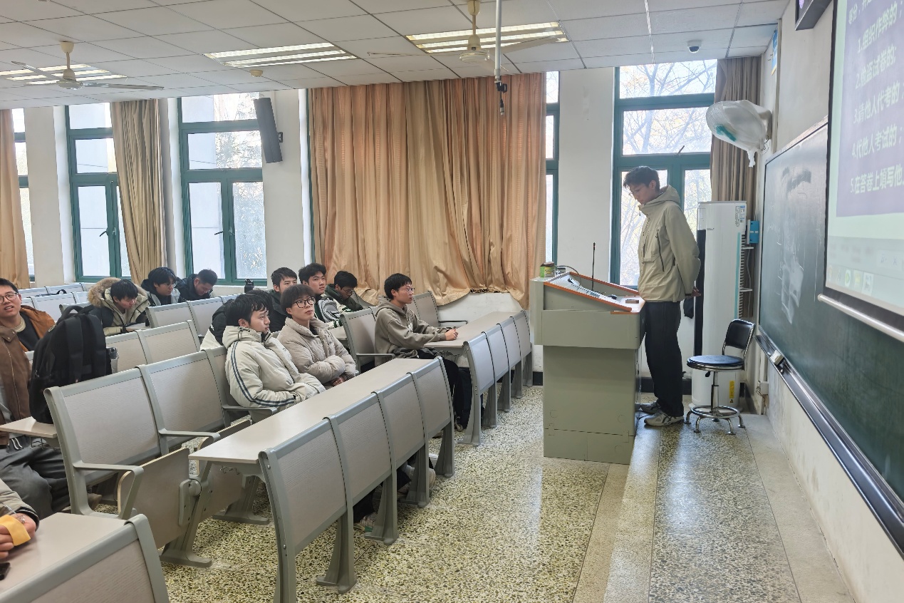 班会伊始,康盛博首先阐述了诚信应考的重要性和必要性。他强调,诚信是为人处世的基本准则,考场纪律不仅关系到个人品德修养,更直接影响学业评价的公平性和班级的整体形象。他号召全班同学端正考试态度,严格遵守考场规则,用实际行动维护考试的严肃性和公正性。